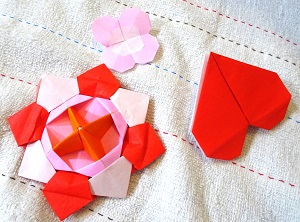 娘(小学校3年生)は学校から帰ってきた途端、折り紙を出してきた。黒板に「ありがとう」的なことを書くらしいんだけど、黒板に折り紙も飾ると良いから家で作ってきて良いか、担任の先生に許可を得てきたらしい。その気遣いと行動力、すごいな。で、教育実習の先生と作った思い出のコマ+ハート+花を作った。ちなみに花はこの前大量に作ったもの。学校に持っていくために袋へ