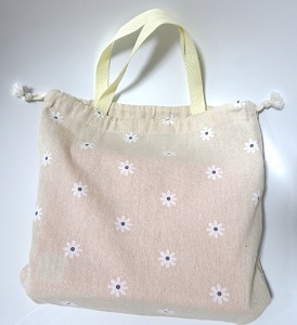 娘(小学校3年生)が学校で国語辞典を使うようになるから、GW前に学校で購入。今週、辞書が届いて、今週中に持っていくから、辞書入れを作った。辞書は必要なときにすぐに手にとって使えるように、辞書サイズの手提げに入れて、机の横に掛けておくことになってる。息子(中学校3年生)のときは、学校グッズを作った布の余りを使って作っても問題なかったんだけど、娘は、可愛い布がたくさんあるにも関わらず「違うのが良い」って言った。で、布を買いに行ったんだけど、どうしても小さめのショルダーバッグが欲しいって言うから、辞書入れを家の布で作る約束をして、布は買わずにバッグを買った。で、手提げを作ることになったんだけど、娘がままごとのマイバッグに使ってた袋がちょうど良いし、娘の求めるシンプルなデザインだから試しに「これどう?」って見せたら、「いいね、これ。でも洗濯してから持っていきたい」って言った。昨日洗濯したんだけど、もうひと回り小さいのが理想。昨日買い物ついでにキャン・ドゥを見ると、娘が気に入りそうな巾着があったから、2色買ってきた。ベージュとグリーンがあって、両方可愛いんだけど、娘は即ベージュを選んだ。ってことで、グリーンは私のものにしよう!持ち手を探したんだけど、アイボリーの持ち手は使っちゃったらしく、ダイソーで買ってきた。今日、マチを作って持ち手を付けて、巾着の紐は一度外して無しにしようと思ったんだけど、やっぱりあったら便利かな?と思って紐を付けられるように持ち手を付けて、最後にもとに戻した。