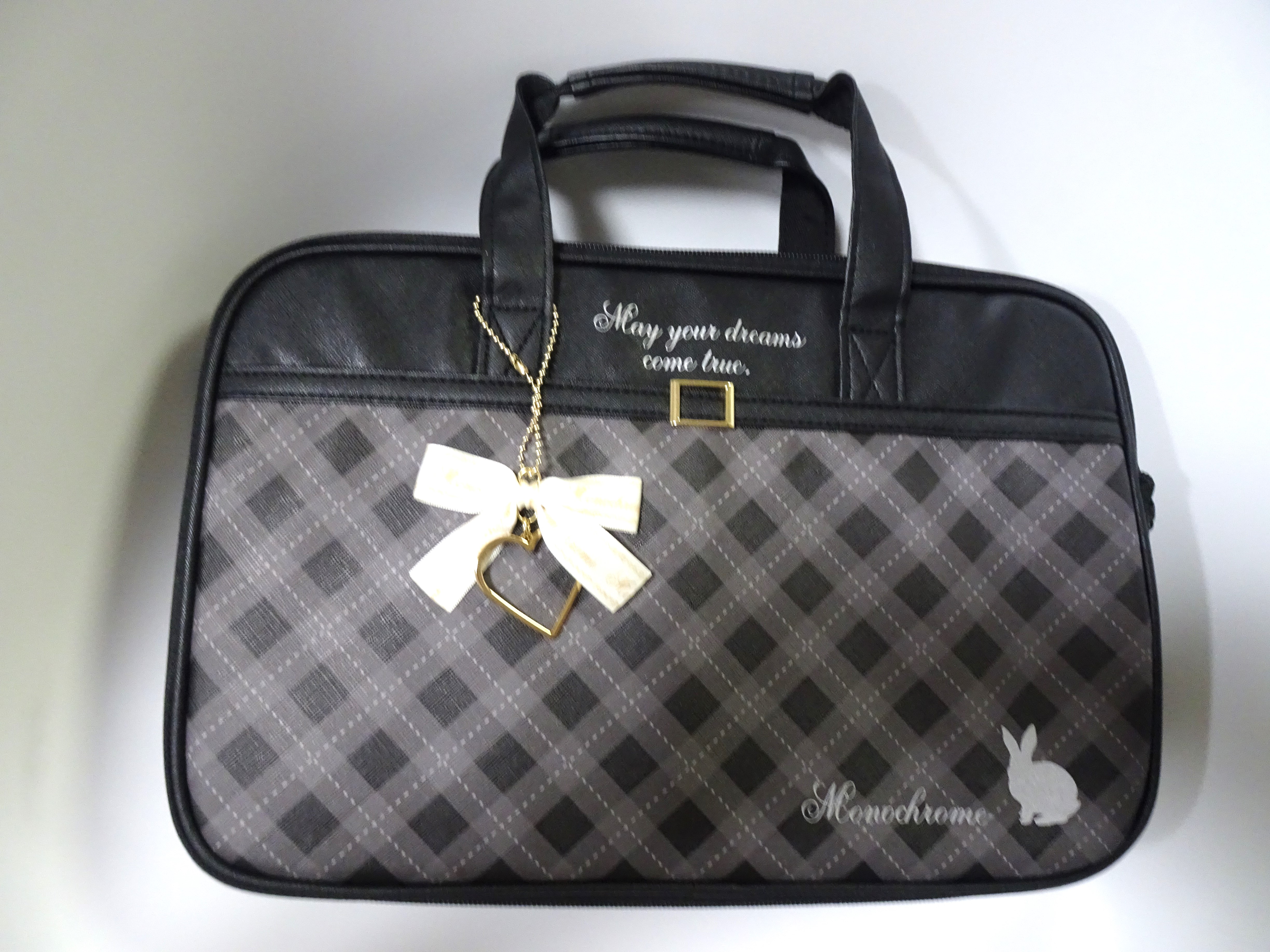 今日、娘(小学校3年生)が買ったばかりの習字道具に名前を付けた。習字道具のバッグのデザインは15種類あって、大抵の子の好みの物があると思う。娘は学校でチラシを貰った時に、既に2つのデザインに絞ってた。たぶん1年生の時に選んだら、あと2つ候補があったと思う。ハートとリボンのキーホルダー付き!学校はお守り含むキーホルダーは全て禁止なんだけど、これはOKになるってことだよね。チャームもハートで可愛い♪ちなみに、中は普通に習字道具だった。