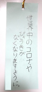 今日、娘(小学校3年生)が、学校に飾ってた七夕の短冊を持って帰ってきた。「世界中のコロナやびょうきがなくなりますように」願いが壮大!家で書いた願い「家族が長生きしますように」もそうだけど、私が乳がんになったから、完全に治るようにと願ってるらしい。
