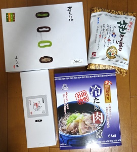 今日、パパの実家から荷物が届いた。今年のお中元を送った時に、不在票に気づかず一旦持ち帰りになった件で、「迷惑かけたから何か送るね」って言われてて、「今までもらっているもののほうが大きいから気にしないで」みたいな内容を言ったんだけど、送ってくれたようだ。喜久福、笹かまぼこ、牛タン、冷たい肉そば冷たい肉そばは初めて知った!食べるの楽しみだ♪