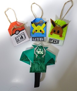 今日、私がでかけてる間に、娘(小学校3年生)が折り紙をしていた。「何作ってるの?」って聞くと、作ったお守りを見せてくれた。可愛い。後期は学校で「折り紙係」になったようで、折って持っていくとのこと。娘はこういう何かを作って持っていく係を選ぶことが多いな。で、「ママにも作ってあげる。何がいい?」って聞かれて、ピカチュウかイーブイか迷ったんだけど、ピカチュウを選んだ。バックの色も決めて良いって言われたから、私の机に飾るから、ナチュラル系の色が良いと思い、茶色か黄緑か迷ったけど、黄緑を選んだ。今は机に飾ってある。