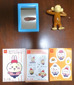 今日は、学校が休校になったんだけど、私が病院に行かないといけないから、帰りにマックで昼食を買ってきた。今回はハッピーセットはちぃかわ。おさるのジョージはおまけ。