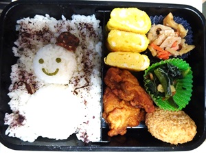 今週は、冬休み前でお弁当は1日だけ。12/23(月)小学校の途中で、息子からキャラ弁禁止令がでたんだけど、今ならゆきだるまくらいなら怒らないかな?と思って、ご飯に紛れてゆきだるま作っておいた。息子に見られないように注意しながら作ってお弁当箱を閉めて、いってらっしゃい!特に何も言われなかったから、たまにはアリなのかもしれない。