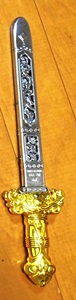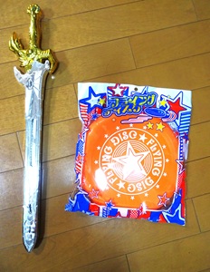 娘(小学校5年生)が友だちに誘われて、お祭りに行ってきた。夕食は食べてたから、くじを2回引いてきた。当たったのがこの2つ。この前の祭りで剣3本買ったけど、更にかっこいい剣GETした。