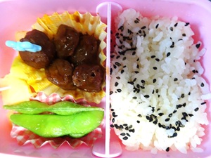 今日、娘(小学校5年生)は、友達の家に遊びに行くんだけど、一緒に御飯も食べたいからお弁当を持っていく。って言った。で、「あ、自分で作るから!」って言って、自分で食べたいもの入れて持っていった。ご飯は、ごま塩ミートボールえだまめ茹でたじゃがいもに塩コショウ別の入れ物に缶詰のみかん