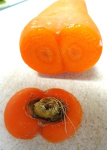今日、人参切ったら2つがくっついてた。で、良く見たら、上もそういう形だった。