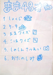 今日は、私の誕生日会。私と息子(高校2年生)はオープン・キャンパスがあったから、昨日、寿司の出前を予約して、プログラムを作り、飾りつけを用意して、今日買うものだけ、パパと娘(小学校5年生)にお願いした。まずは夕食。寿司、唐揚げ、漬物、プチトマト。ケーキはシャトレーゼの8月のケーキ。娘(小学校5年生)は、10回クイズを10問ネットで探して出してくれた。「しか」と10回言う → サンタさんが乗っているのは? → ソリ「10」と10回言う → 90の次は? → 100「日焼け」と10回言う → 鶏が産むのは? → 卵「入浴」と10回言う → アメリカの首都は? → ワシントン「ももたろう」と10回言う → 亀をいじめていたのは? → 村の子供達「ワシ」と10回言う → 乳搾りする生き物は? → 人間「イカさき」と10回言う → タコを焼いた食べ物は? → やきだこ「サンタクロース」と10回言う → トナカイに乗っているのは? → 誰も乗ってない「カビ」と10回言う → 工場に火を付けたら? → 飛行場「かね」と10回言う → 家の上にあるものは? → 屋根(←謎。逆に?ってこと?)クイズは、夏をキーワードに作ったクイズ。https://plaza.rakuten.co.jp/imoimoco/diary/202508160002/おたのしみは、娘からの誕生日カード。娘からのプレゼント(アリスキーホルダー)と、自分の楽天ポイントでお気に入りに入れていた商品の中から選んで買ったアリススマホ立て。