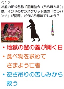 <1>お盆の正式名称は「盂蘭盆会(うらぼんえ)」と言い、語源はインドのサンスクリット語の「ウラバンナ」です。どういう意味でしょう?・地獄の釜の蓋が開く日・亡者が食べ物を求めてさまよう・逆さに吊り下げられる苦しみから救う ★正解解説)死後の世界で母が逆さ吊りにされ苦しんでいるのを知った弟子が、 お釈迦様の教えに従い供養し、救うことができたという故事がはじまりとされています。 先祖や亡くなった人たちが苦しむことなく成仏してくれるように<2>電話越しに聞こえない音は?・セミの鳴き声 ★正解★・花火の「ヒュー、ドーン!」の「ヒュー」・現在作れる最も薄いガラスで作った風鈴の音<3>「人間の命をどの生物がどれだけ奪っているか」ランキング1位は蚊、2位は人、3位は?・ツエツエバエ・犬・蛇 ★正解★<4>ヤンキーなどが居座らないよう、うっとうしい蚊の音を利用している場所はどこ?・コインパーキング・ドン・キホーテ・コンビニ解説)蚊の音を発生させる装置を設置して、若者のたむろ対策として効果的な手段となっている。ファミマやセブンの一部店舗で使用していて、モスキート音だから若者にしか聞こえない<5>日本ではスイカには塩をかけて食べますが、ギリシャは何と食べるでしょう?・ヨーグルト・オリーブオイル・チーズ ★正解★<6>ピンクや赤などのカラフルな色素を持つサンゴが白くなる理由は?・やけど・夏バテ ★正解★・日焼け<7>花火が打ち上がる時の「ヒュ~」の正体は?・花火玉が空気を切り裂く音・花火玉が回転して空気とこすれる音・花火玉に付けた笛の音 ★正解★<8>蚊取り線香の容器が豚になった理由は?・土管に入れて使っていたら、煙が散らばったので、 口を小さくしたら豚の鼻みたいになった ★正解★・豚は縁起が良く、よく使われた(貯金箱など)・豚は蚊に刺されやすかった<9>夏な釣りで定番のりんご飴はどこの国が何用に作った?・アメリカでクリスマス用に作った ★正解★・フランスで愛の象徴として結婚式用に作った・日本の青森のねぶた祭りでリンゴ農家が作った<10>瓶ラムネの中に入っている玉の名前は何でしょう?・A玉 ★正解★・B玉・C玉解説)A玉を作ってる途中で傷が入ったA玉はラムネに使えないので、ビー玉として売った。