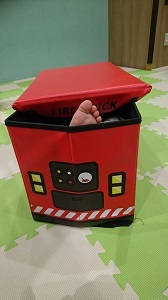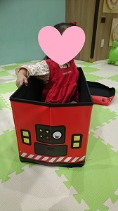 ロディで遊んだあと、娘はおもちゃ箱に入った。