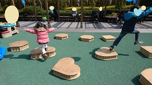 空気の入った中で遊ぶのとか、すべり台があったけど、