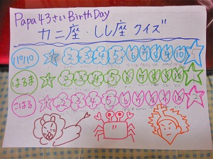 そして今回、パパの、かに座クイズ。来月は、私の、しし座クイズ。