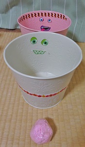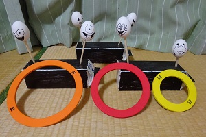 ハロウィン飾りに作った、卵の殻のおばけを使おうと思ってて、