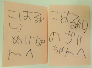 今日はそれと一緒に渡す手紙を2人同じように書いてた。