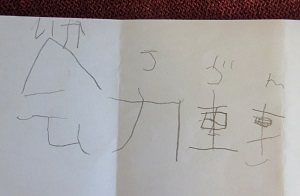 今朝、娘(幼稚園年中)が漢字を書いてた。