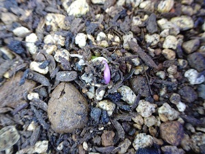 (写真は芽かな?と思った時のもので、今日は双葉が出てた)