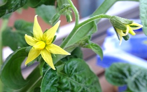 6月25日 ミニトマトのつぼみが付いて花が咲いた 大葉はどんどん食べてます