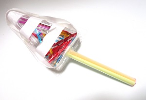 持ち手は、タピオカを飲めるような太いストローに普通のカラーストローを3本入れたもの。
