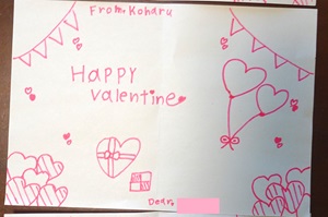 友だちにはカードを書いて、ハートの後ろに入れた。