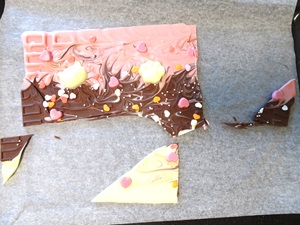 板チョコピンク、茶、ホワイトを2枚ずつ並べて、