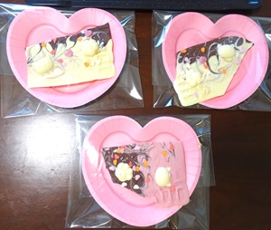 買ってきたハートチョコ、アラザン、カラースプレーなどを散らして