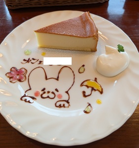 娘はりんごケーキ、私はベイクドチーズケーキ。