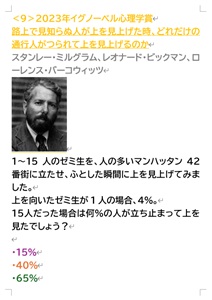 1~15人のゼミ生を、人の多いマンハッタン42番街に立たせ、ふとした瞬間に上を見上げてみました。