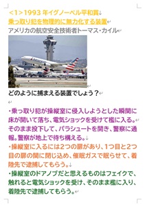 ・操縦室のドアノブだと思えるものはフェイクで、触れると電気ショックを受け、そのまま檻に入り、着陸先で逮捕してもらう。
