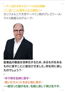 医薬品の製造を効率化するため、あるものをあるものに戻すことに成功させました。何を何に戻したのでしょう?