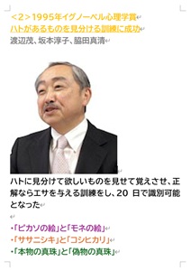 ハトに見分けて欲しいものを見せて覚えさせ、正解ならエサを与える訓練をし、20日で識別可能となった