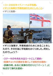 イギリス海軍が、予算削減のためにあることをしたので、その行為に平和賞をおくりました。何をしたのでしょう?