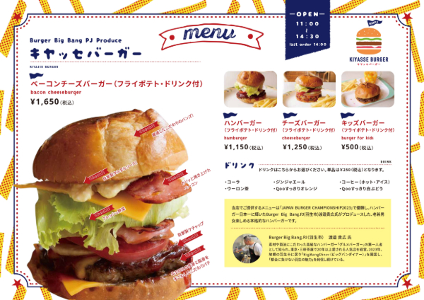 キヤッセ羽生にあるキヤッセバーガーに行って、チーズバーガーを食べてきた。まずは、チーズバーガーについて。不味くはないけれど、ちょっと気になったのは・・・パテに生焼けの部分があったのが残念。妹の方は、しかり焼けていたそうだ。レタスは新鮮なんだけれど、個人的に緑が濃いレタスより、薄緑で柔らかな食感のレタスが好き。ケチャップは抜群に美味かった。マスタードは無かった気がする。ある方が好みだな。その他は平均点。付合せのポテトは、表面・中身とも柔らかタイプ。表面カリカリ、中身はホクホクが好きだな。ドリンクはアイスコーヒーを選択。これは可もなく不可もない。総合点は5点満点で3点といったところ。食べ物に厳しい拙者、これに4・5点はあげられない。※あくまで個人の感想だよ〜ん。
