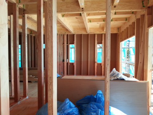 ども。昨日の夜、シコタマ睡眠とったお陰で体調万全のマーチンです。 日曜の朝から月曜の夕方まで働いていた為、昨日の日中は大分マイってましたが何とか復活 ∠( ゚д゚)/シャキーンそして昨日も書いたように上棟があったわけですが、コチラも無事に終わり気持ちもアゲアゲだったのですが・・・ 上棟の次の日が雨ってどうゆう事よ!! ツイてない男だから、所詮こんなもんか?神も仏もあったもんじゃね~な!!(言い過ぎか?) しかも、昨日お家に帰って写真を嫁に見せて貰った時に、認めたくない事実を嫁から突き付けられるということまで。 嫁 「家、大き過ぎだよね・・・・・」マ 「・・・・・・・・・」 ヤッパそう思っちゃう? 基礎作ってる時点で「ん?」とは思ったけど、柱が建つと圧迫感パネェっす!!薄々感じていたとはいえ、認めたくなかった事実。 とは言え、今更そんな事言っても変えられるわけも無いので、「もうどうにもならないから、今後その事は言わない様にしよう」と嫁に言って聞かせます。自分にも「やらないで後悔するより、やって後悔したほうがイイ!!」と無理矢理言い聞かせてます (;´∀`) まぁ、何だかんだ言いながらも徐々に家っぽくなってるのは嬉しい訳で、心配事は天気のみ。来週の日・月と雨の予報が出ちゃってますからねぇ (・д・)「皆さん心配されるんですが、濡れても大丈夫ですよ」ってH氏が言ってたけど、濡れないに越した事はないですよね。 いつもは天気予報が当たらないとイラっとするマーチンですが、今回ばかりは予報が当たらない事を願っています (-人-)