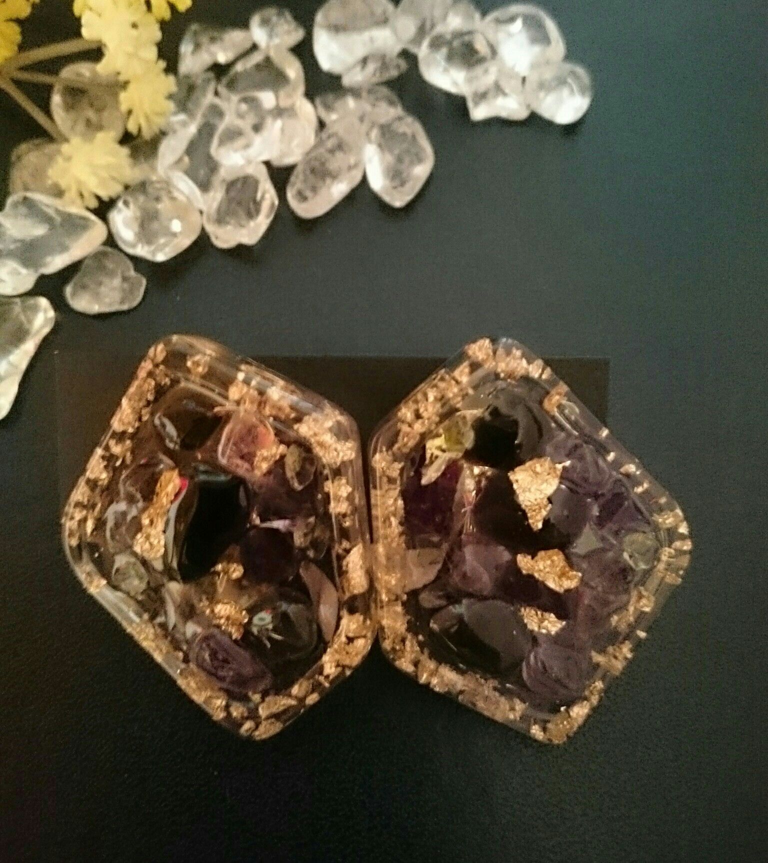 いつもご覧いただきありがとうございます 大好きなお花のシリコンモールドを使ったイヤリングとピアスです。アメジストとペリドットを敷き詰めてキラキラ綺麗です。 【花*天然石イヤリング・ピアス】はラクマにてご購入頂けますので、覗いてみてくださいね