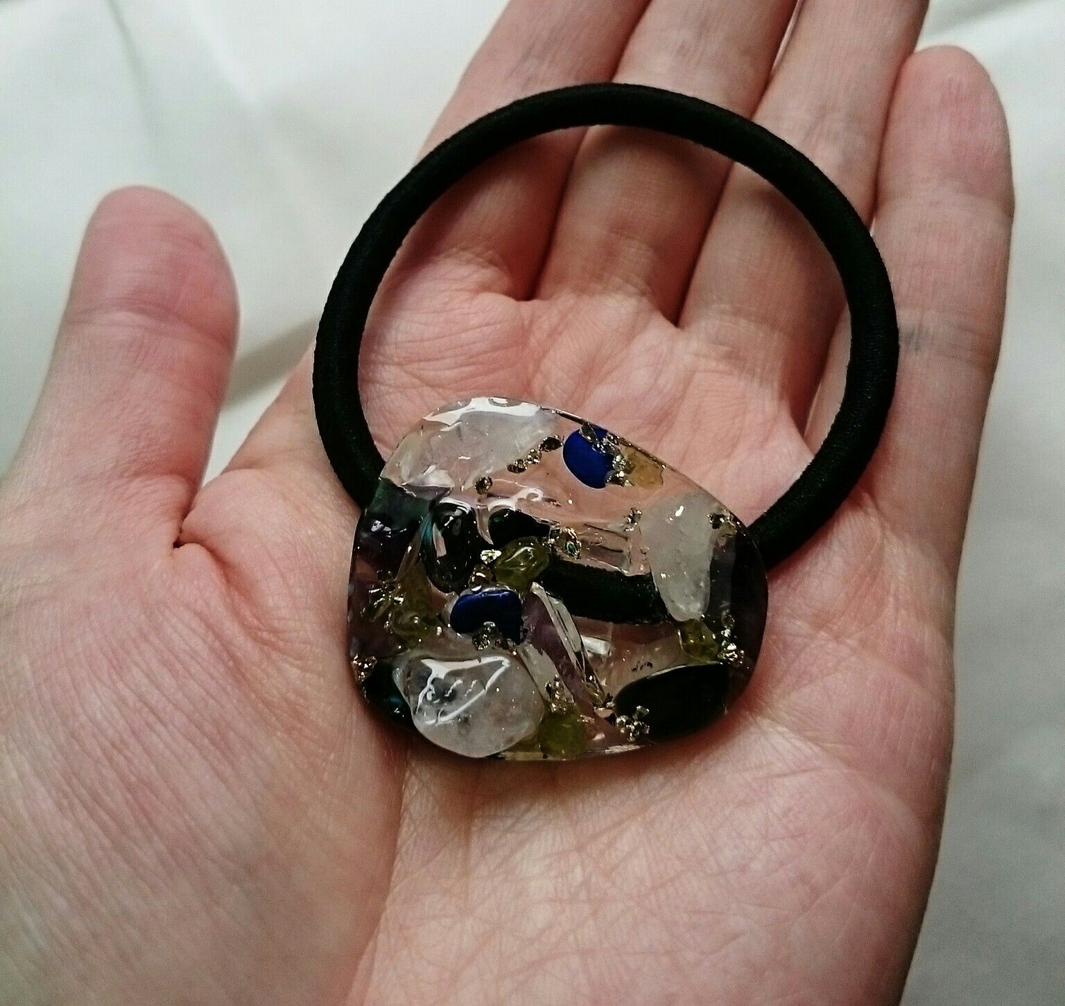 いつもご覧いただきありがとうございます 新しいデザインのヘアゴムを作ってみました。 変形スクエアに数種類のさざれ石がごろごろ入ったヘアゴムです。艶々のシンプルなデザインですっきり髪をまとめるのにぴったりです。 【天然石スクエアヘアゴム】はラクマにてご購入頂けますので、覗いてみてくださいね
