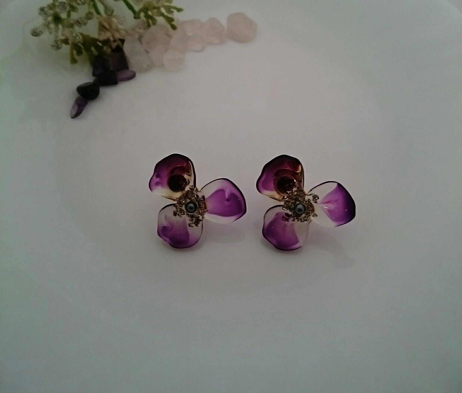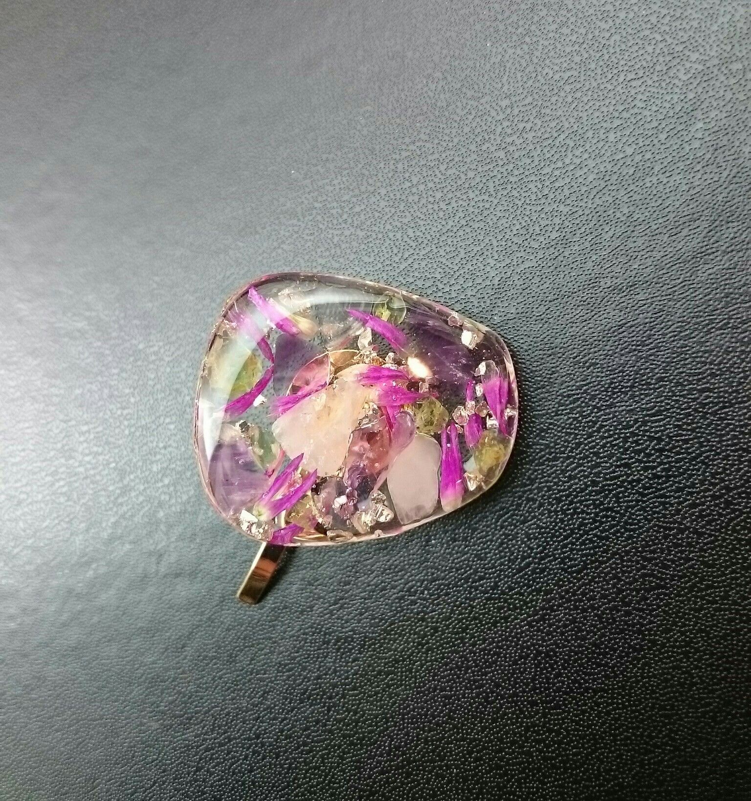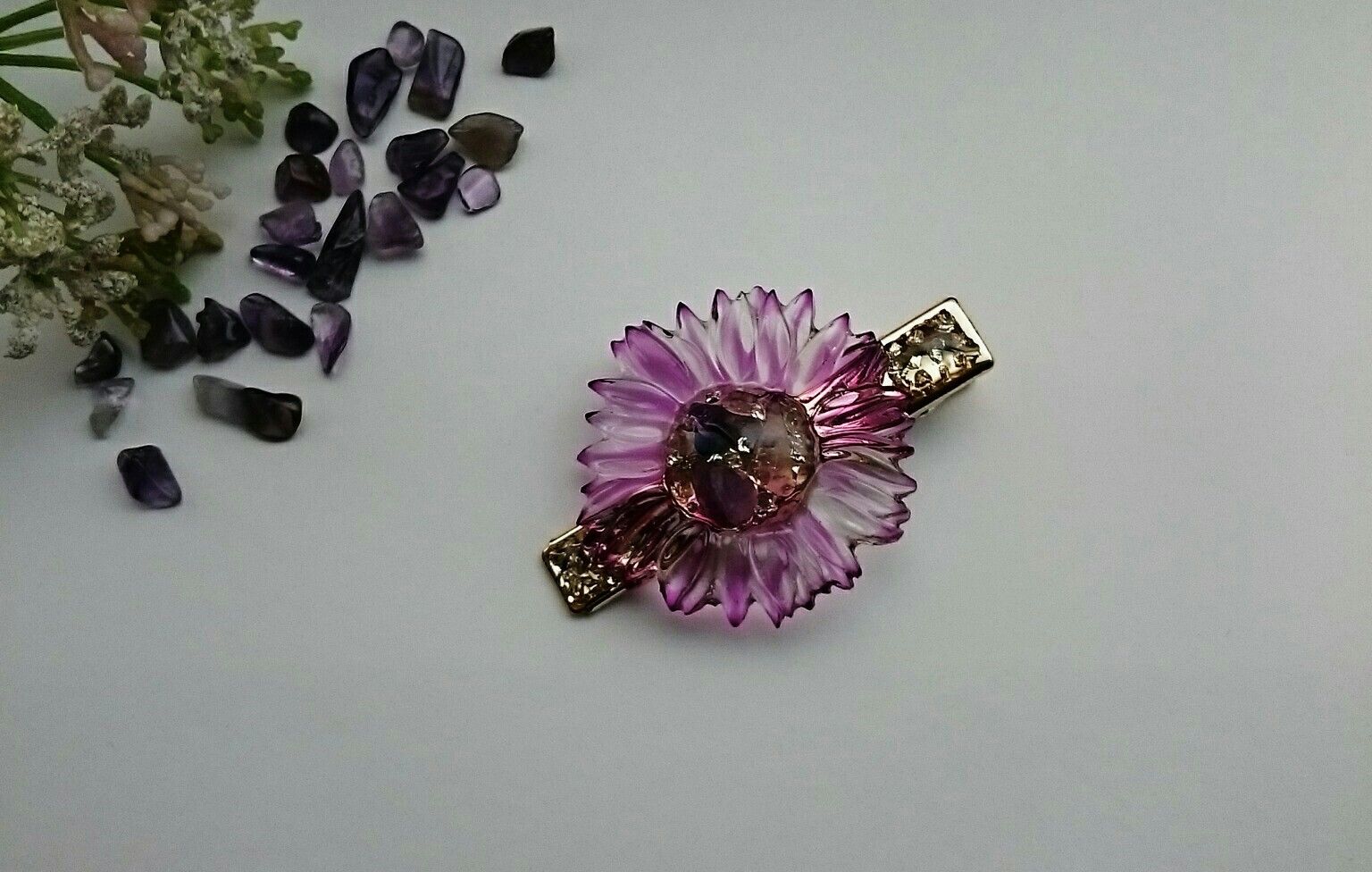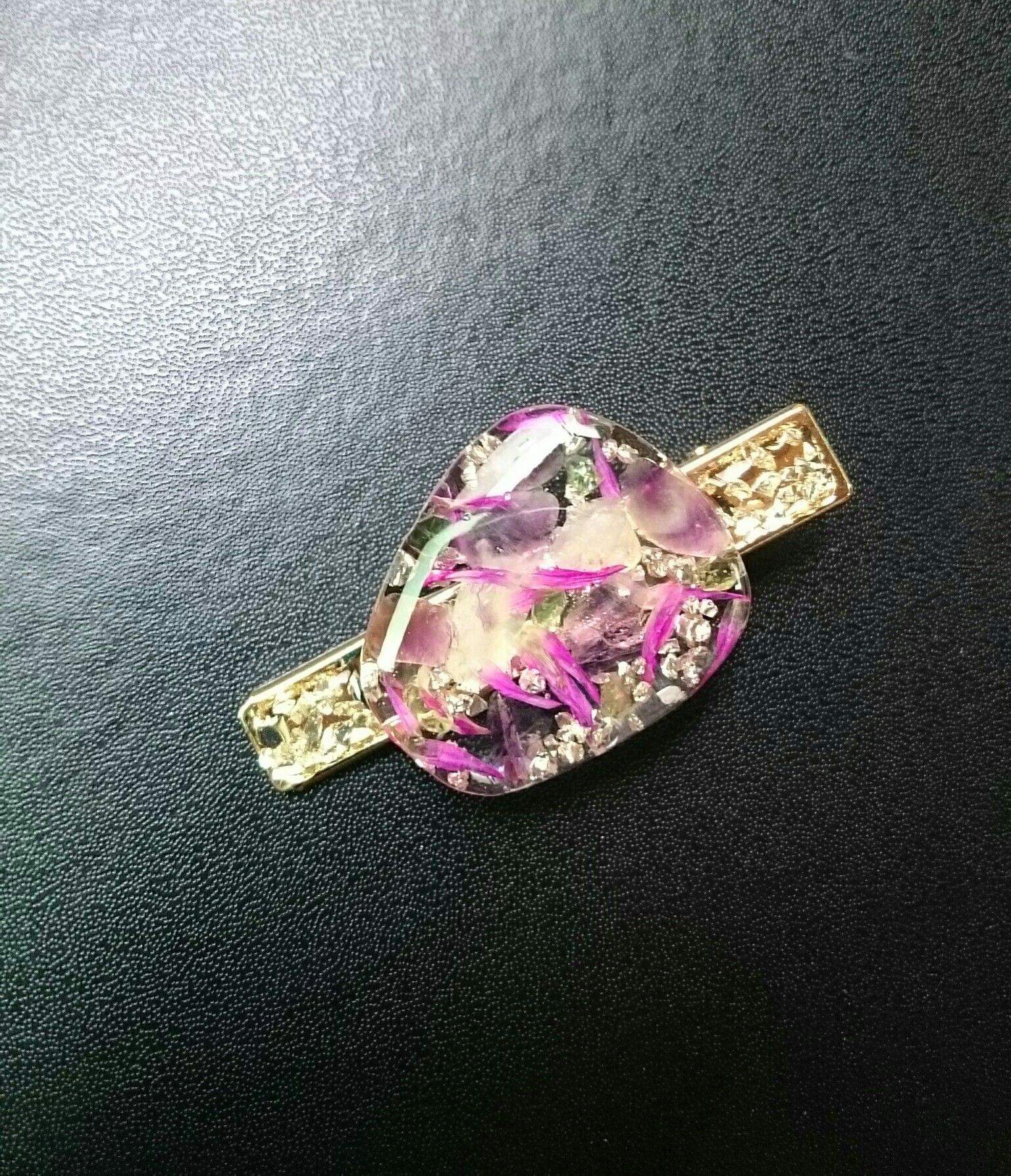 いつもご覧頂きありがとうございます 大好きなお花のモールドで作ったヘアクリップが2点仕上がりました! 透明感のあるお花の真ん中の部分にアメジストを含む数種類の天然石を入れております。 【天然石お花ヘアクリップ】はラクマにてご購入頂けますので、覗いてみてくださいね