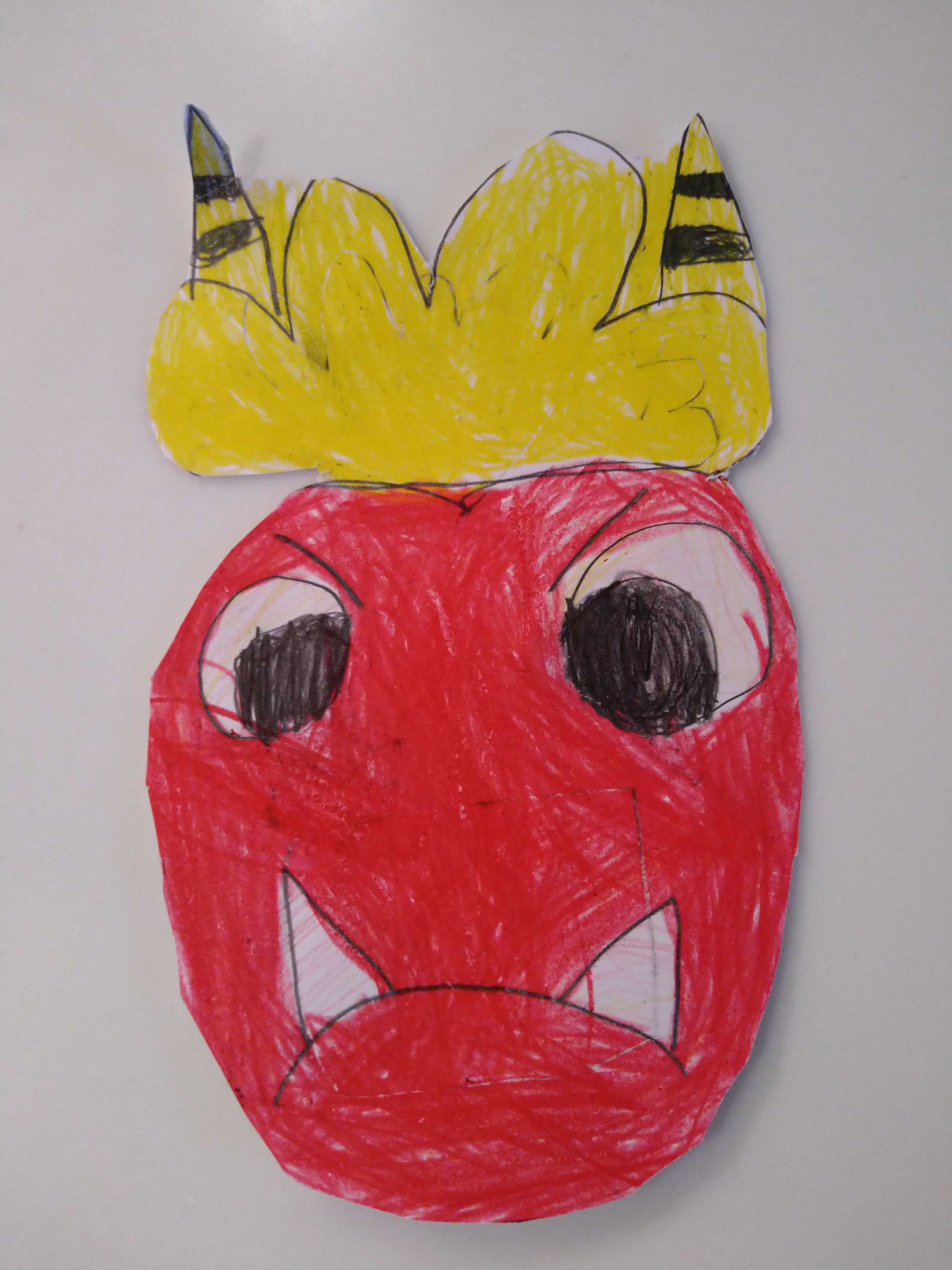 春休み目前ですね♪♪今日もいつも通り集合場所手前まで一緒に登校しました♪1年生もあと数日。楽しいことが1つでも見つかりますように♪先日の消しカスボール事件。涙まで流したのにあっさり見つかりました。テレビ台の上に!!!「同じ色だったから わからなかったんだー」と。落ち着いて見たらすぐ分かるよね。大人だって焦ると探し物が見つからないもんね。朝から泣いて登校したので学校では大丈夫かなと心配しましたがケロっとしていました。親が心配するほど子どもは弱くないのよね。家だと甘えられる存在がいるけど外だと気持ちの切り替えも出来るし意外としっかりしているもんです。だから疲れて帰ってくることもあるしリラックスできる場所=家ならOkなんですよね♪♪よく頑張っているよー!って言ってあげたいですね♡先月の学校でのイベントで息子が描いた赤鬼さん!牙が気に入っているそうです♪