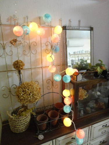 海外のライトは可愛いものが多いので、大好きです。こんな可愛いボールライト入れてみました。ハンドメイドで作られてるそうです。かわい~素敵なカントリーが8月7日に発売になりますがこの1年間76号~79号に掲載されたインテリアの中で読者ハガキアンケートでなんと人気NO1インテリアに選ばれました。ちょこっと次号にも載ってますので本屋さんでチラ見してみてください