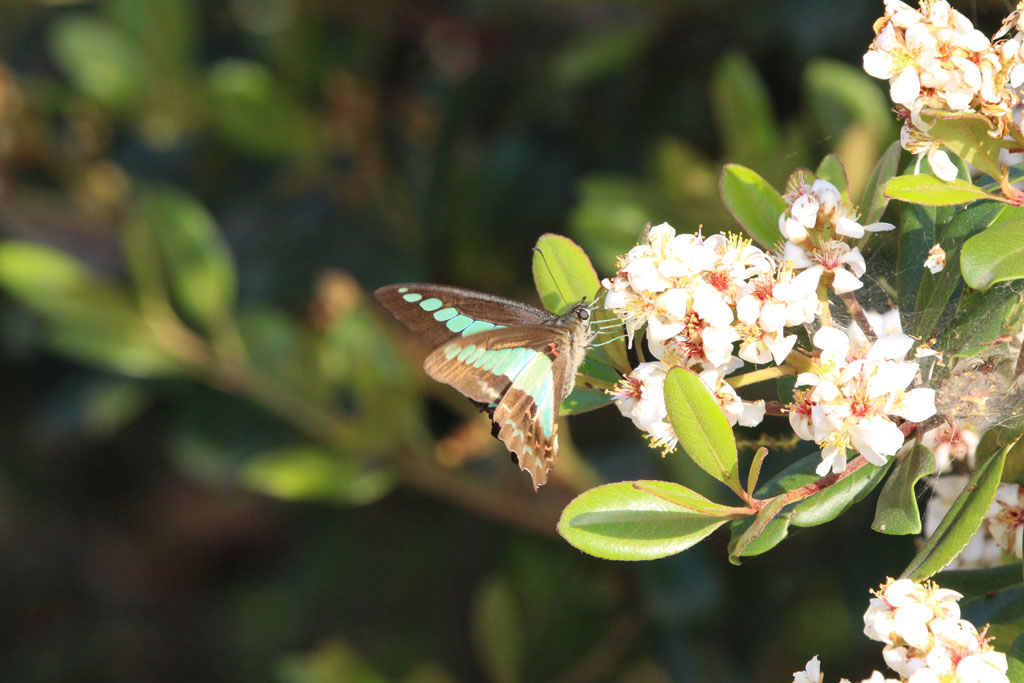野鳥もいいけど、野蝶もね。というわけで、アオスジアゲハ。取り立てて珍しいわけではなく、都内の市街地でもよく見かけますね。ただ、結構速い動きで飛ぶので、望遠レンズのファインダーに収めるのはなかなか大変でした。