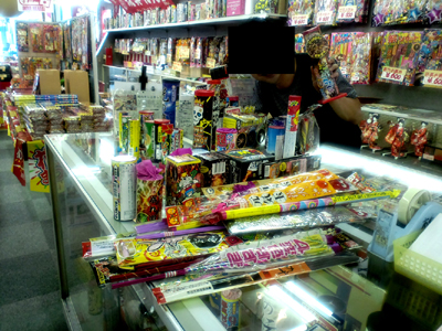 今日は花火大会(?)お昼から、3人で、買い出し隊です。松屋町の花火問屋まで、道を間違え、迷いながらクネクネ~~っと、辿り着いたのがココ。3人で、あれやこれやと選びまくり店のおっちゃん、お勧めの「打ち上げ50連発」やら、そのタイトルが気になる「打ち上げ・ムシ虫団」(なんだこりゃ?)「三種の神器」だの「かまいたち」だのと、最近の花火は派手でネーミングもおかしなものが多いですな・・。。。その中でも、珍しかったのが、色つき線香花火。あと、玉が落ちない「高級線香花火(16本で600円)」あーだこーだと、一通り選び、あとは、予算15000円内におさまるように、店のおっちゃんにお任せしてチョイスしてもらいました。ジャジャーーン!こんなに沢山買えました。そして夜・・・近くの広大な緑地公園で16名で花火☆”(「4WD」という噴出系花火です。ひと箱に噴出系花火が4つ入っていて、火をつけると、その4つがいっぺんに、ドバァァァーーっっ!!!と噴出する大スペクタクル(?)花火)花火で楽しんだあとは、真夜中のスイカ割り!楽しかった~~☆”