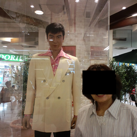 女の見栄とはスゴイもので。。。特に、なんの取り柄もないウチのオカンのようなおばちゃんは、見た目にすごい情熱と労力を傾ける傾向があります・・・。。自分の中に特殊的才能をお持ちの飼い主(自分で言ってみる)にはつまらないコトで・・・。。オカンよ。。。あんたの同窓会のために、あたしゃ、今日1日つかれたわ!!!!(1)もうすぐ40年ぶりの同窓会があるので、キレイさで人に勝ちたい。(2)だからドモホルンリンクルで若返る。(3)レーザーで顔のシミも取ってみた。(4)あとは洋服を選ぶだけ。(5)自分で洋服を選べない。ということで、飼い主、おかんの洋服を買いに強制連行でございます。お近くの西武百貨店に、イヤイヤ連行され、(60過ぎたオカンの洋服などどうでも良いのだ・・・)とりあえず、30代後半~40代後半ぐらいの品の良いミセス系の「BRIGITTE 」と「アリスバーリー」で適当に見つくろい、コーディネイト。オカンは60過ぎだが、ちょっと若い雰囲気のモノを着せてセレブ風に仕上げようと考えたのでつ。。。さすが東京スタイルのブランドは、お安くて(ココ重要!)パターンが上品でキレイです。ツイードのスーツと、それのジャケットと組み合わせたら別の着まわしができるフレアスカート、シフォン系のシャツ2枚。+黒いコサージュ。を買わせて、解決解決。。。1人で選ばせたら、よう探されへんみたいで、もうダメです。。。靴も、マリークレールのちょっと若いキレイな雰囲気のものにし、解決解決!(ついでに立ち寄った「石原裕次郎等身大フィギア」の前で、のんきに浮かれている張本人の図)あ~~~しんど~~~~でも、着る人が着る人だからねぇ・・・・ついでに飼い主もオンワードでピンクのプリーツミニを買ってもらって、まぁ、これが今日のお駄賃代わりということで。。。。でも、縁起でもない話だが、オカンがいなくなったら、こういう1日が、幸せな思い出として残るんやろうな~ってちょっと思うのでした~。。。