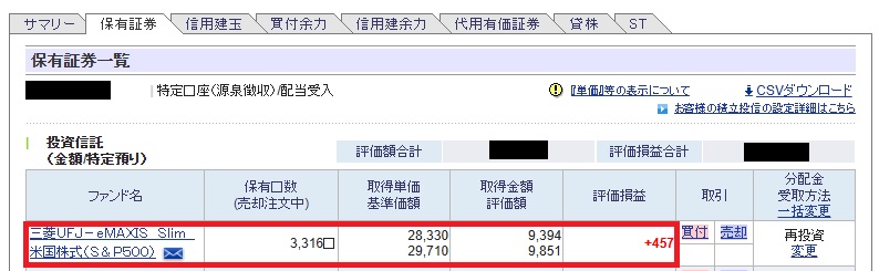 2日遅れましたが、4月の実績を公開します。実は、4/30~5/2まで、関東に旅行に行ってました。敢えて平日に日程を組むことで、ホテルの宿泊費が安く抑えられました。今日以降の宿泊になると、エグいくらいに料金が跳ね上がります。私が泊まったホテルは、今日以降の宿泊費は昨日までの3倍。カプセルホテルですら、1泊2万円だのところもあるそうで、本当に高くなりましたね。一応、4/30は宿泊先で更新するつもりだったんですよ。ちゃんと、ノートパソコンも持っていきましたし。しかし、ホテルについた段階で、時間と気力が残されていませんでした。今日の基準価額は5/1から変わりないはずなので、本来更新予定の4/30から1日だけずれた成績になりますが、公開します。---------------------【SBI証券】特定口座※黒塗りのところは、リアルマネーで購入した投資信託の分も含まれるので、隠しています。取得金額(買い付け金額)…9,394円【楽天証券】新NISA 成長投資枠※黒塗りのところは、リアルマネーで購入した投資信託の分も含まれるので、隠しています。取得金額(買い付け金額)…333,914円 うち、4月買い付け分 ポイント…1,452円 SBI証券から…6,809円評価額…328,417円評価損益…-5,498円評価損益率…-1.65%評価損益率は3月は+3.08%だったので、4.73ポイント下落しました。----------------------ついに含み損を抱えましたが、これは昨日株価が急上昇しての結果なので、恐らく4/30時点ではもっと含み損が大きかったと思います。ま、このポイント投資に限らず、新NISAから投資を始めた人は、ほとんどの人が含み損になっていると思います。ここで投資を辞めてしまうかどうかが、この先10年15年と大きな差になると思います。私は、当然続けます。この程度の下落は、6年の投資の中で既に何度か経験しました。今後も、淡々とS&P500を買い続けます。投資信託ランキング