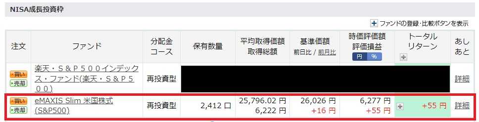 ※黒塗りのところは、リアルマネーで購入した投資信託の分も含まれるので、隠しています。