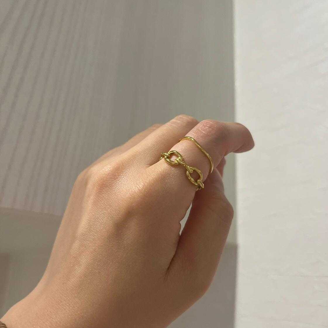 【1000円均一SALE! 2200円→1100円】R006 指輪 リング サージカルステンレス 金属アレルギー対応 錆びない 付けっぱなし チェーン スクエア シンプル おしゃれ 個性 かっこいい メンズライク 女性 レディース ゴールド カジュアル ギフト プレゼント accessory 5yz