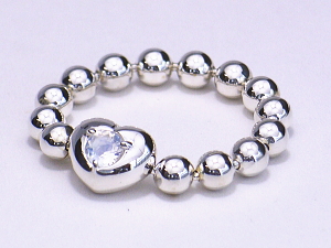 シルバーボールチェーンリングこんにちは、今日はこのリングをご紹介してみたいと思います。このリングは、当工房独自の加工でロー付けではなく加工していますので、トップのハートがくるくると回転するとっても面白い、チョット変わったリングです。ですから、ローリングハートという名前です。わたくしたちは、この技術をエンドレス加工と呼んでどこでどう加工しているか分からないところから始まりも終わりも無いといっています。ほかではないと思います。皆様も是非本物をご購入くださって確かめてみてください。ほかにも色々とこの技術を使ったリングはございます。