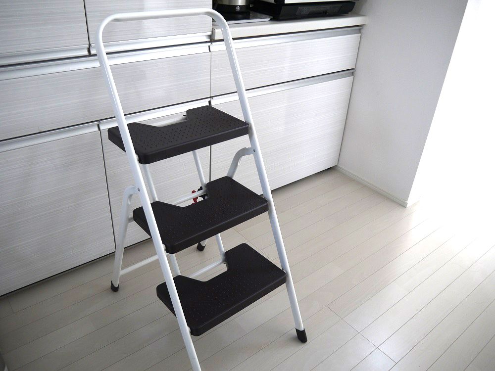 上に収納したものを取る時には、折り畳みの脚立があると便利です♪