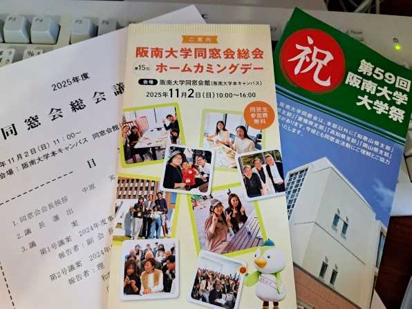 -本日の遠征記-『阪南大学同窓会総会 第15回ホームカミングデー』今日は朝の5時にBARIを出発し、一路大阪に向かいます、、、「阪南大学同窓会総会 第15回ホームカミングデー」に参加するのですねぇ。。。[資料]淡路島経由のルートで片道約5時間で360キロ、、、到着したのは午前10時前でした。。。そして受付をして同窓会総会が始まる11時まで待ちます、、、ちょうど「第59回阪南大学学園祭」が開催されていたので、見に行きました。。。[ホームカミングデーの様子1]私的に大学にやって来たのは、卒業以来37年ぶりです、、、私が入学した頃は2学部2学科だったのに、現在は4学部5学科になり、建物もずいぶん増えました。。。やがて11時になり総会が始まり我が愛媛県支部からは、大西支部長が2024年度の事業と決算を報告しました、、、その後、50周年記念会館に移動して、学食体験で"カツカレー"をいただきましたねぇ。。。また午後1時過ぎには、平山学長が懇談に応じてくださり、、、来年開催予定の愛媛県支部大会のご講演をお願いしました。。。[ホームカミングデーの様子2]さてさて午後3時からの、仲里依紗さんのトークショーも見てみたかったのですが、我々は日帰りの強行軍、、、2時には帰路につき、帰りに豊浜ICにある「八将」さんでうどんを食べて、午後8時台に帰還しましたねぇ。。。皆様、お疲れ様でした~~♪[ホームカミングデーの様子3]※インスタグラムhttps://www.instagram.com/nagaifumihide/*****************************【阪南大学】HP:https://www.hannan-u.ac.jp/******************************#色眼鏡 #ブログ #食べ歩き #ラーメン #うどん #そば #グルメ #愛媛 #香川 #高知 #徳島 #今治 #松山 #西条 #新居浜 #B級 #ご当地 #バイク #ツーリング