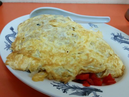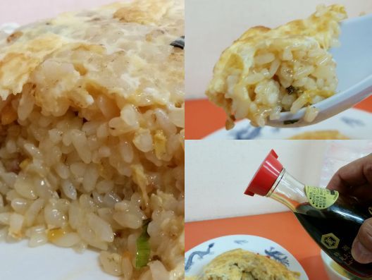 また"オムライス"と違って、卵にケチャップがかかっていないので、もう少し味にパンチが欲しいところです、、、ソースかなあぁぁぁ、、、いや、この味には醤油でしょう。。。私は醤油を少しだけ廻しかけました、、、おおぉぉぉ、、、ビンゴっ!! これはイイっ!! うんうん、旨い旨い~☆