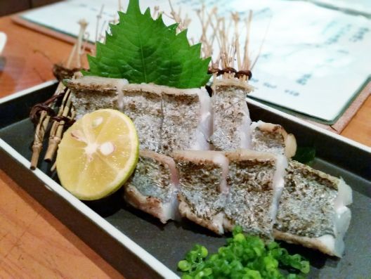 でも私やI.K.君は、魚や肉をいただきましょう、、、おっ、"太刀魚のタタキ"なんてのがあります。。。ほぅほぅ肉厚でモッチリ、、、これは美味しいっ!!