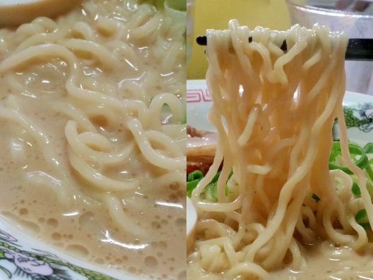 さぁ気になるお味です。。。まず麺は加水多めの中細やや平打ち、ウニウニウェーブタイプです、、、シットリとした食感ですが、もう少し茹で時間が短めでも良いかもしれません。。。そしてスープは、、、おおぉぉぉ、ごまの風味がプンプンの、甘くてトロ~リクリーミー!! ベースの出汁は和風と言うことですので、おそらく魚介や昆布でしょう。。。また"黒七味"も入っているらしいのですが、辛味等はほとんど感じません、、、円やかでコクがあるスープです。。。うんうん、旨い旨い~☆